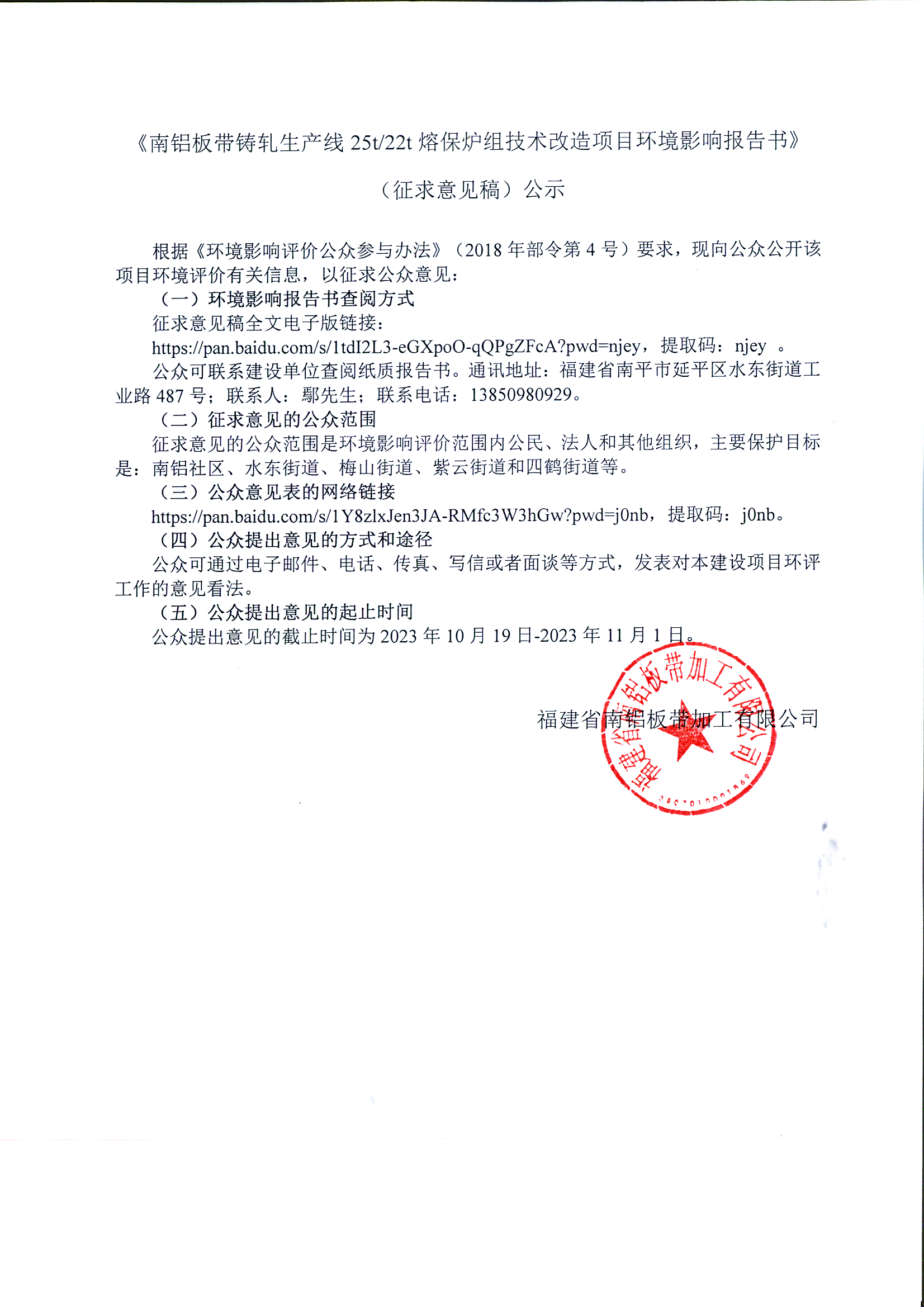 11.南鋁板帶鑄軋技改環(huán)境影響報告書(shū)公示